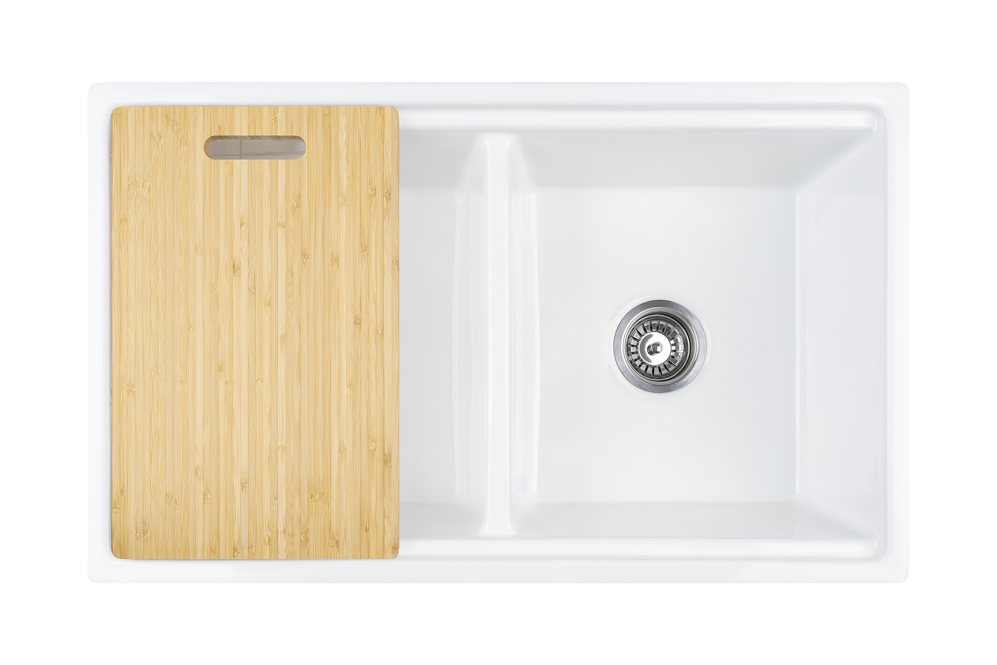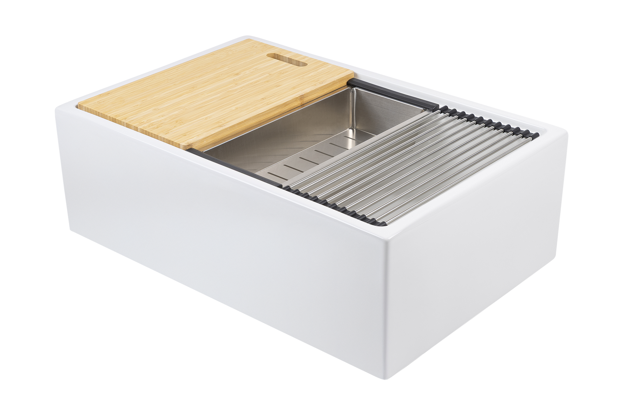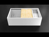 This classic farmhouse sink, with it's timeless styling, has been cleverly redesigned to incorporate internal ledges which accommodate an array of work station accessories that can be removed when prepping is finished, ready to get back to functional washing.