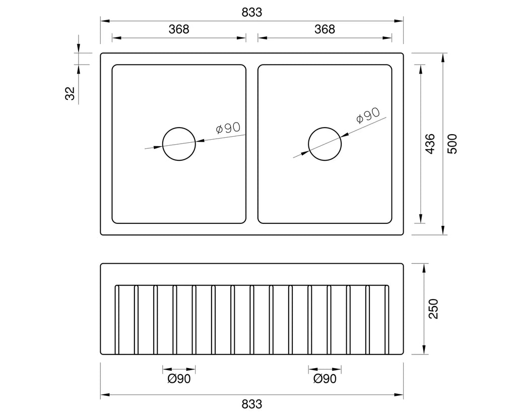 Black Friday Special - Double Fluted Apron Sink - 830 x 500 x 250mm