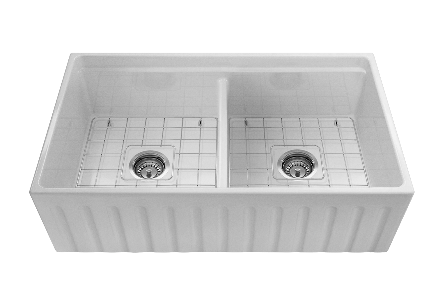 Black Friday Special - Fluted Double Farmhouse Sink with Chopping Board, Grid, Grill, Colander & Waste - 840mm