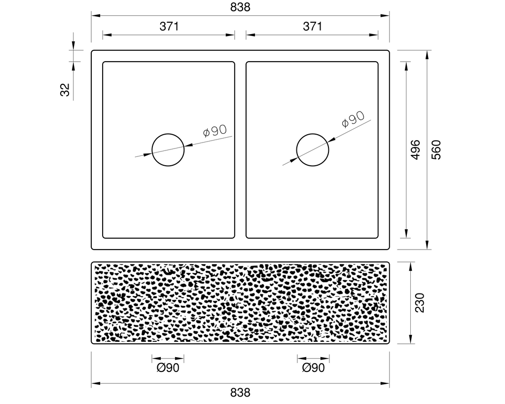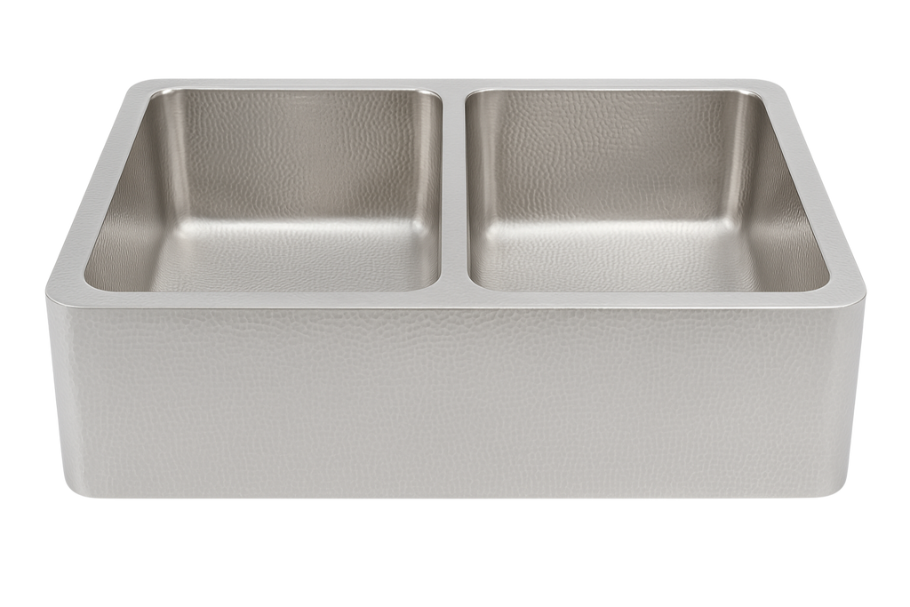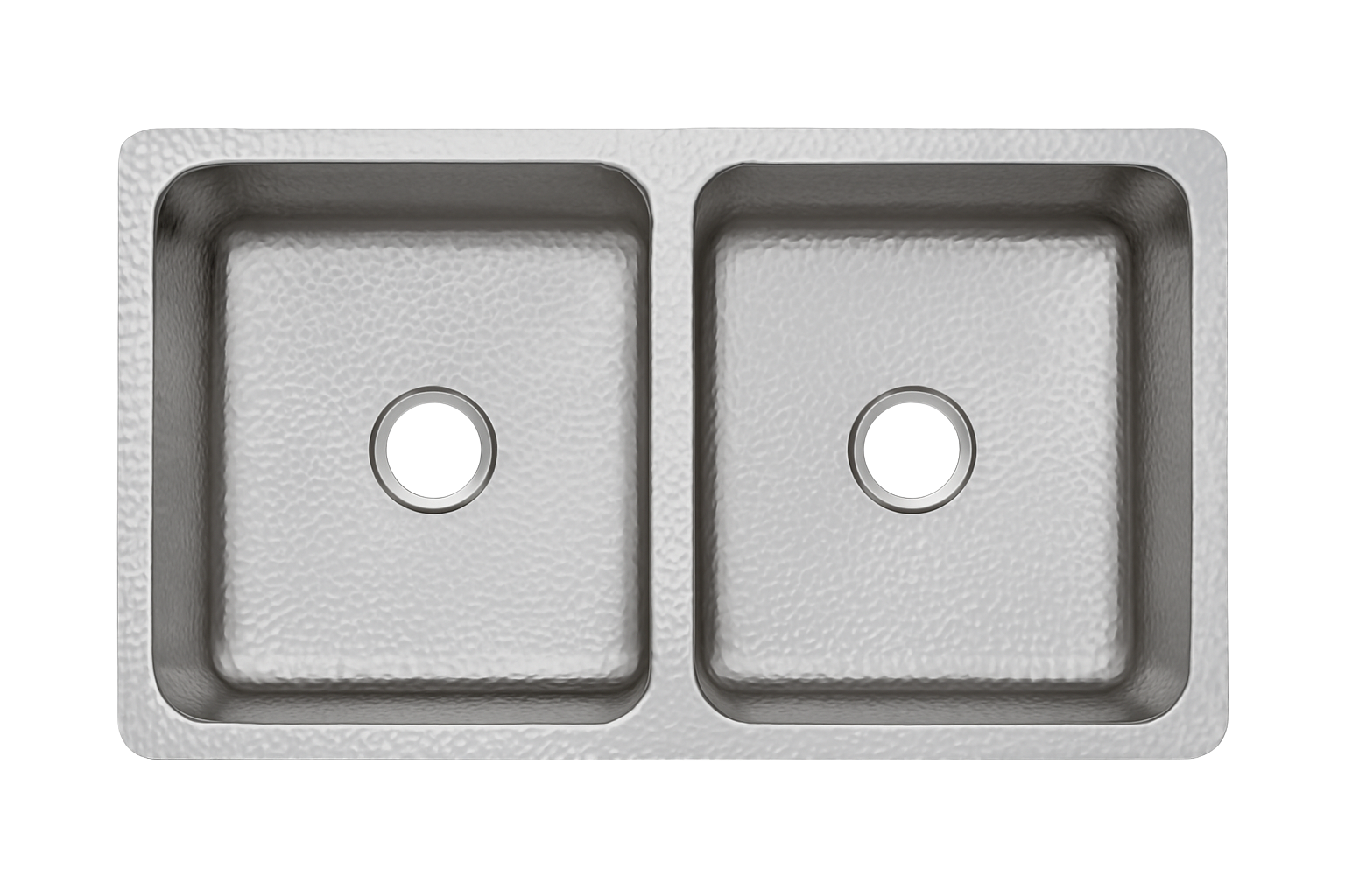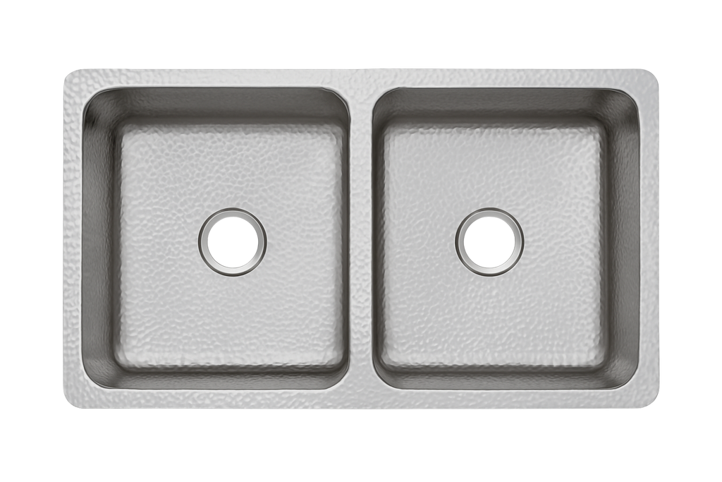 Stainless Steel Hammered Double Bowl Sink - 838mm