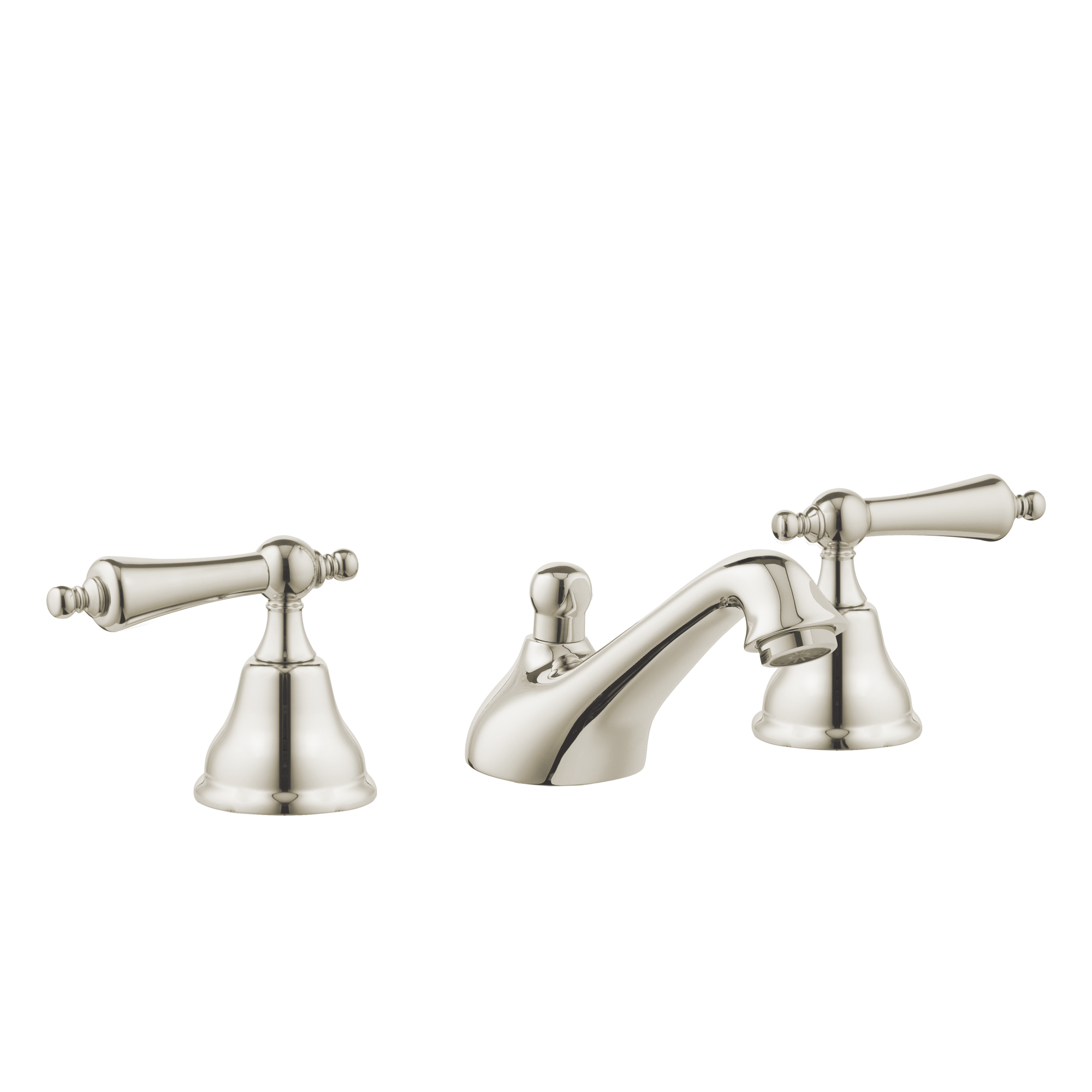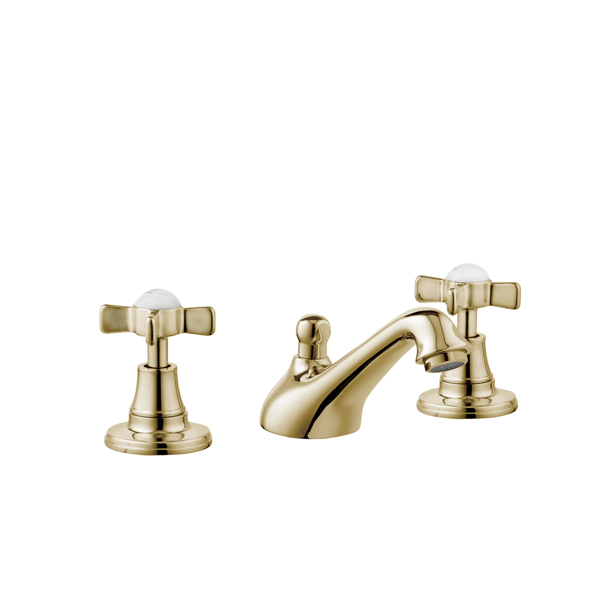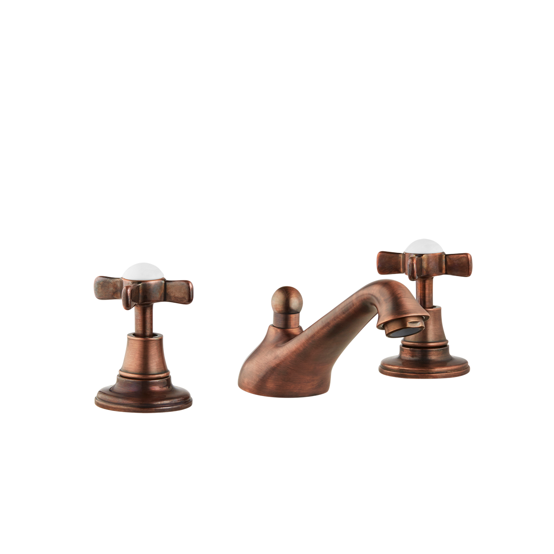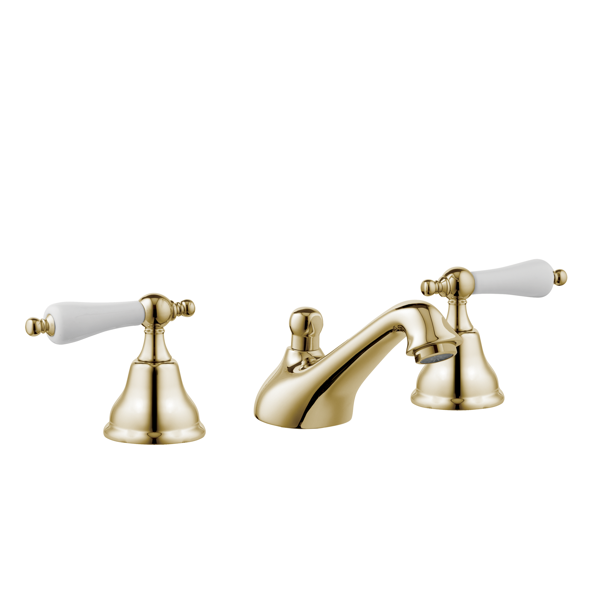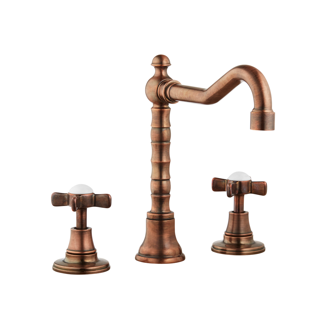 English three hole kitchen taps with English swivel spout, porcelain levers.
